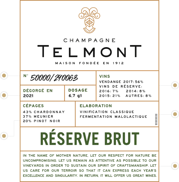 Each bottle is numbered to ensure the tracking of its provenance. The exact number of bottles in circulation for each cuvée is indicated. Telmont chooses the quality of its wine over the quantity of its production.